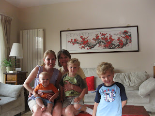 My mom has done amazing here already--jumping right in to our normal routine as if she hasn't been away from our world for the last 7 months. When she arrived it was like Christmas. She had over one full suitcase filled with birthday presents for me and Hudson, along with other things for the kids and for some of my friends here that she had met when she came over with us in September. She was able to join a group of my closest girl friends here for a birthday tea that one of the girls threw in my honor on Wednesday--which was so special! She's helped me run carpool the last two days, with each of us biking around town with kids on the backs of our bikes going to pick them up from art class and go to and from our home school group. (Which, let me tell you, is no small feat! The traffic combined with the crazy driving "rules" coupled with the constant road construction makes maneuvering around town quite the challenge!) She watched the kids for over an hour at the park close by with a sandpit so I could do my huge grocery store run--all the while trying to figure out how to communicate with all of the other sweet Chinese grandparents who desperately wanted to know (by asking in Chinese of course!) all about her and all 4 of her grandkids!